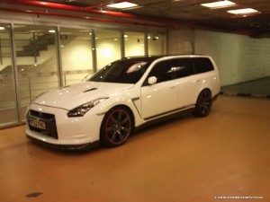 Naime, kako većina Nissana dijeli platforme, tako i GT-R dijeli svoju sa starijom i većom braćom iz Nissana, ali i iz Infinitija. U ovom slučaju je na stražnji kraj modela Stagea, nakalemljen prednji kraj Nissana GT-R. Radi se o odličnom spoju i mora se priznati da ovaj karavan zaista izgleda sjajno, iako, na prvu, izaziva čuđenje. Nažalost, nije poznato da li je vlasnik u ovaj model ubacio čuveni twinturbo V6 motor iz GT-R-a.
